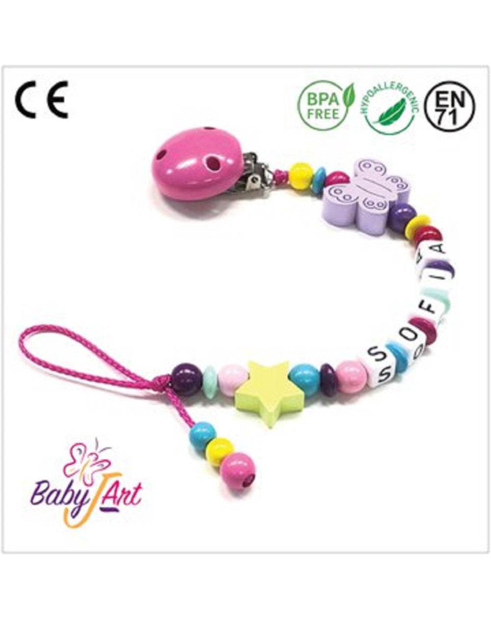 Babyjart Schnullerkette aus Holz mit Namen, Schnullerhaken / Adapter mam