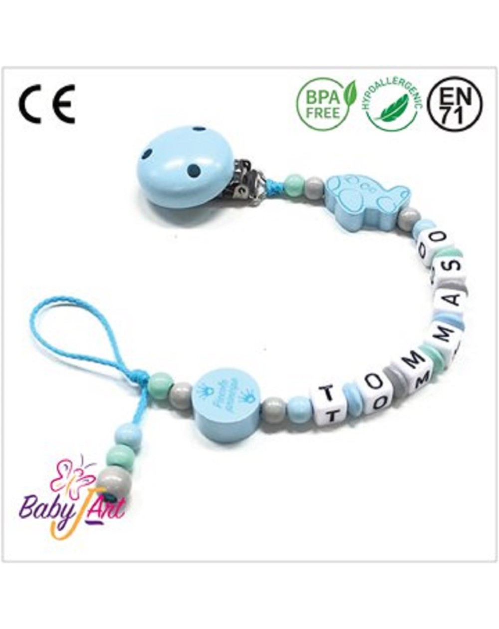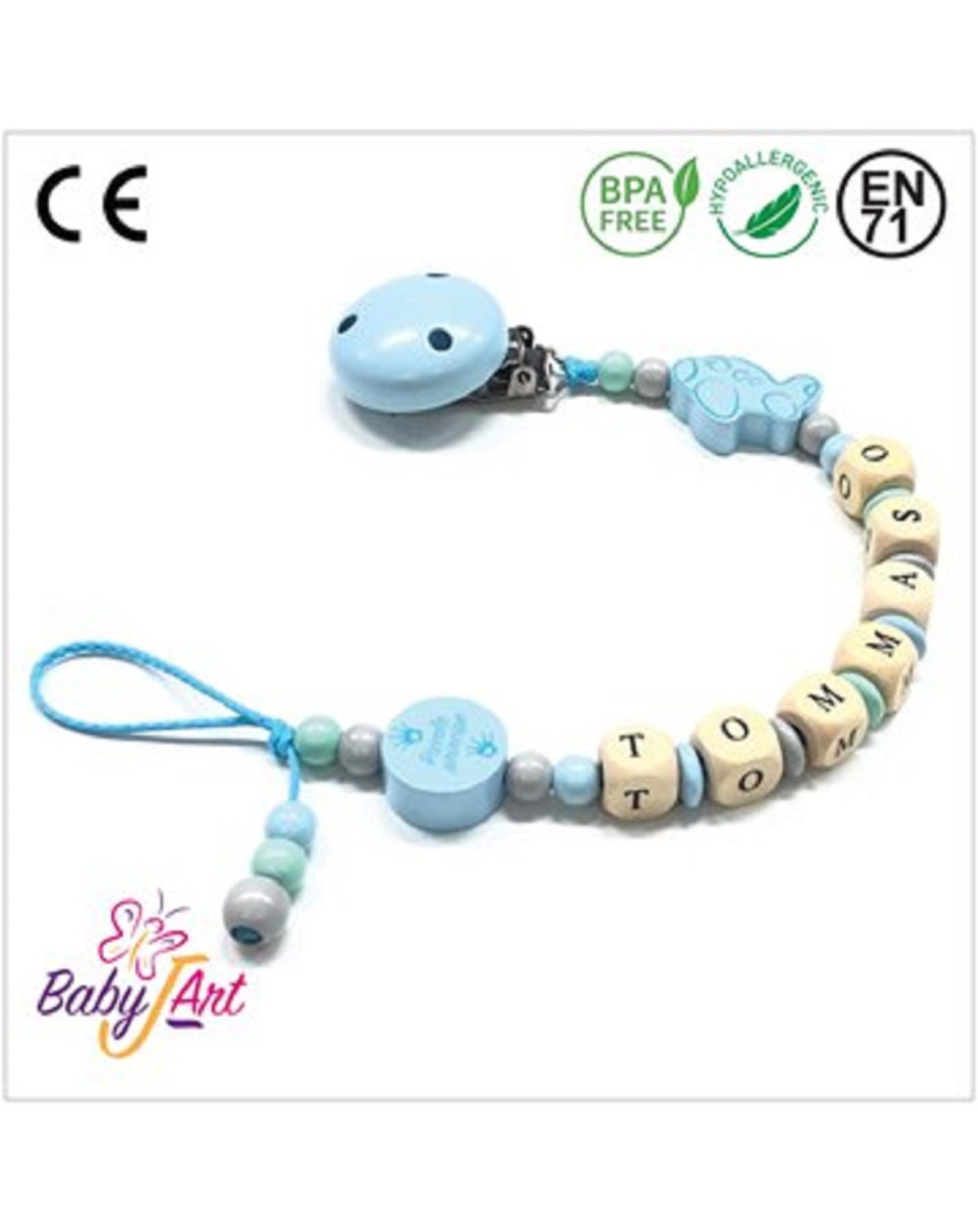 Babyjart Schnullerkette aus Holz mit Namen, Schnullerhaken / Adapter mam
