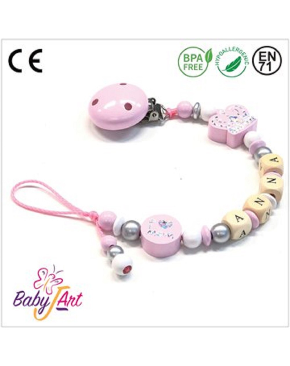 Babyjart Schnullerkette aus Holz mit Namen, Schnullerhaken / Adapter mam