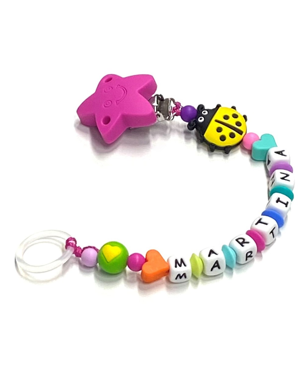 Babyjart Silikonschnullerkette mit Name, Haken / Adapter Schnuller MAM und CHICCO