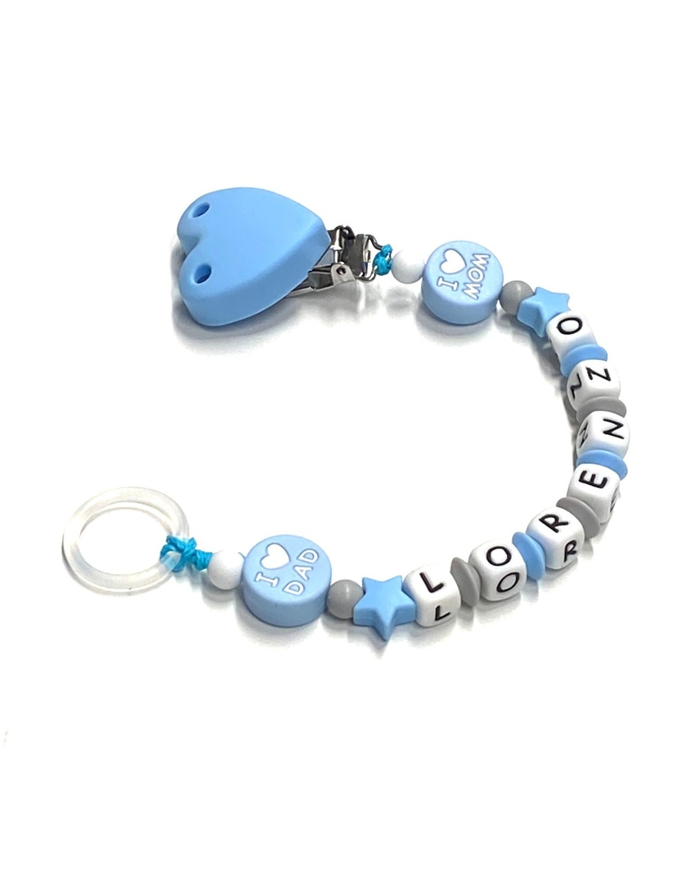 Babyjart Silikonschnullerkette mit Name, Haken / Adapter Schnuller MAM und CHICCO