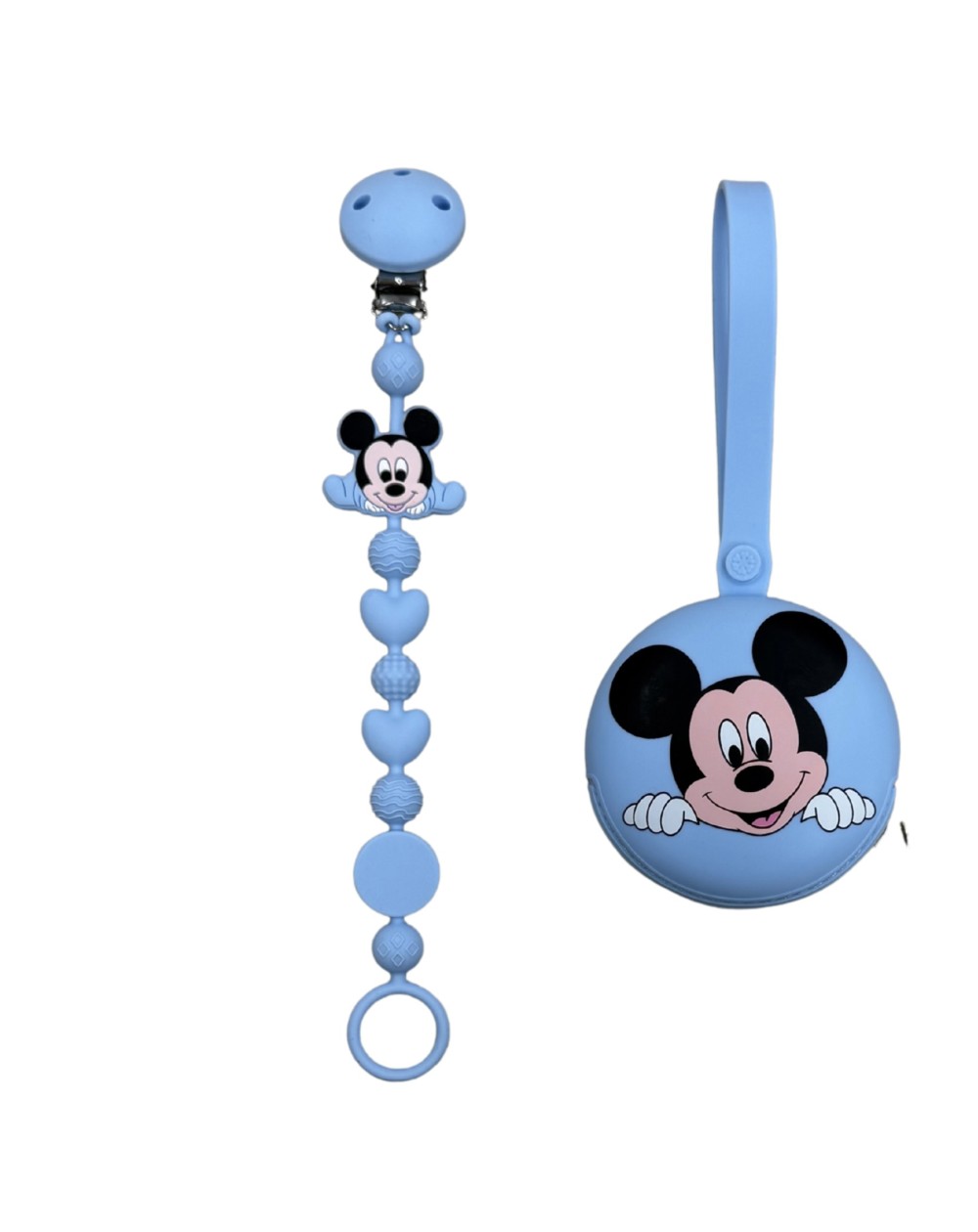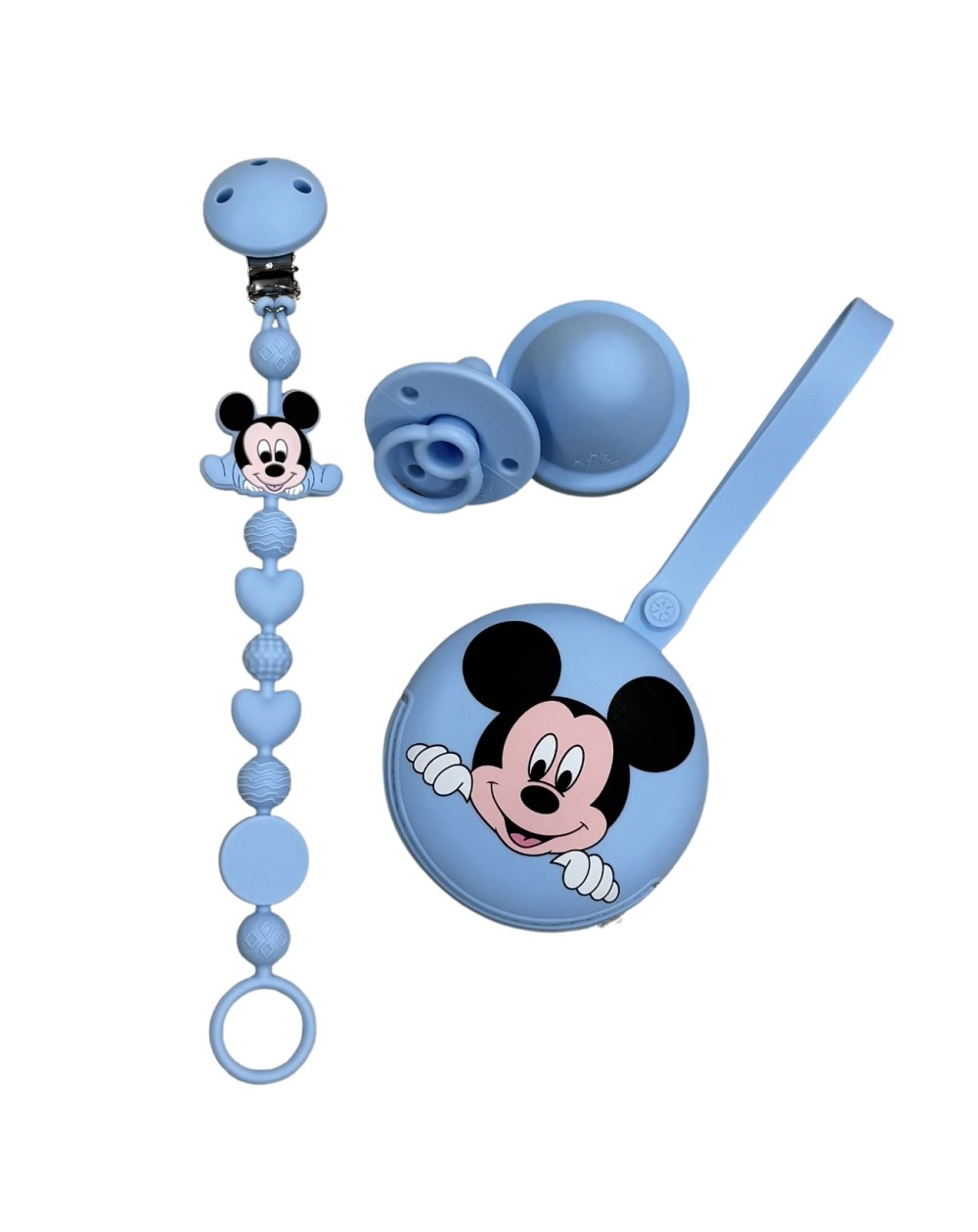 Silikonschnullerkette BUBBLE CHARM MICKEY MOUSE PASTELLBLAU mit Name