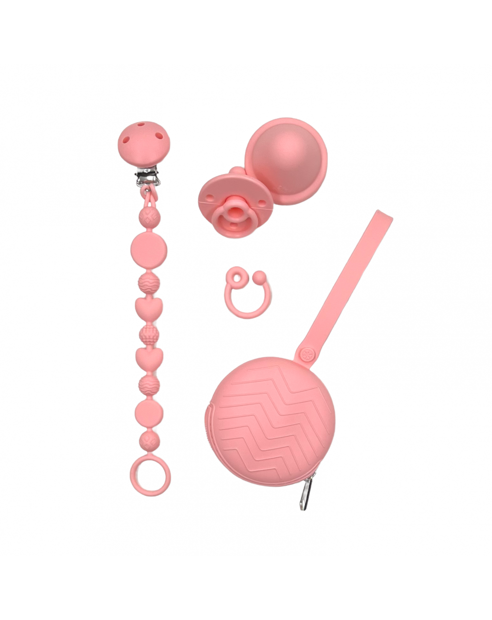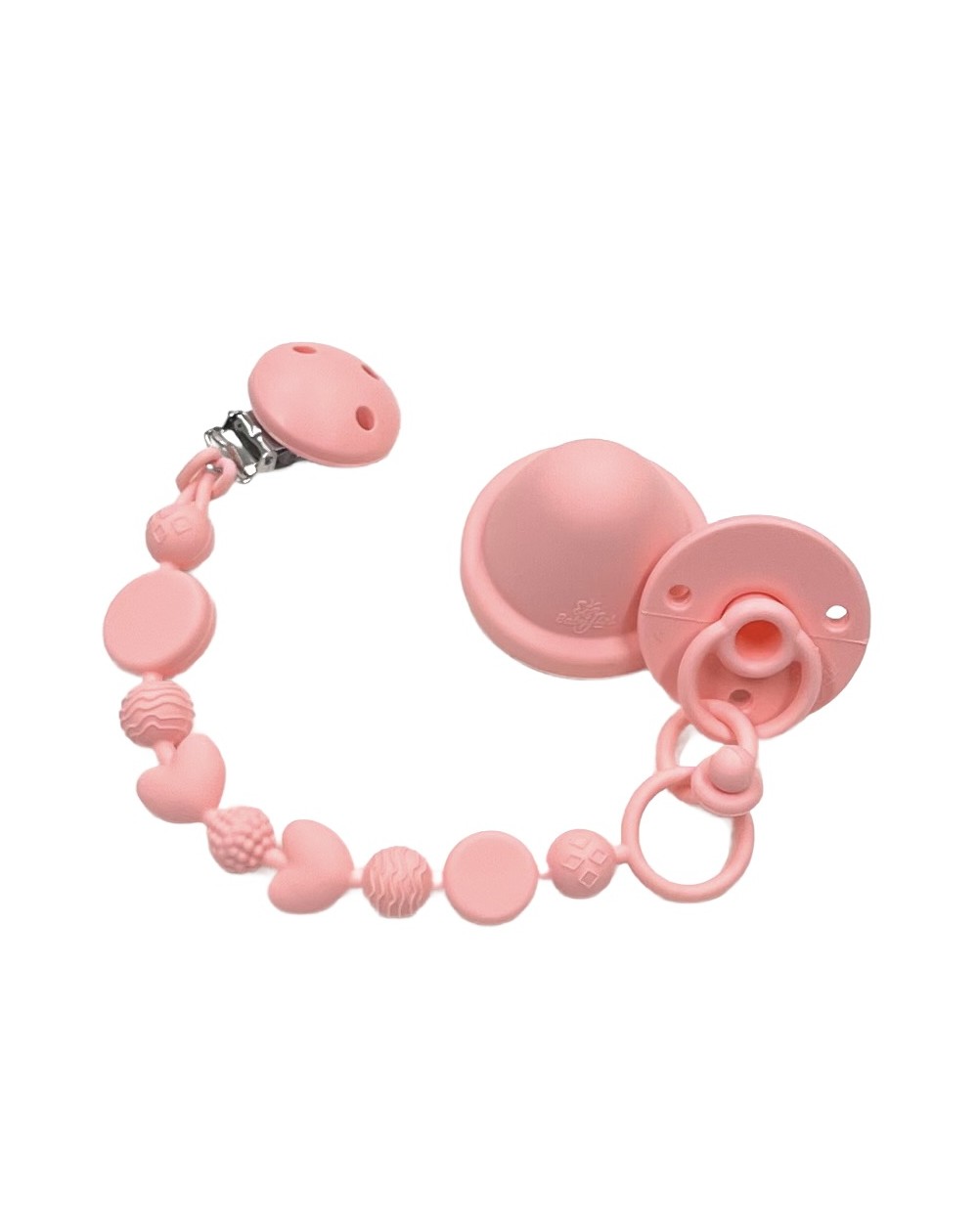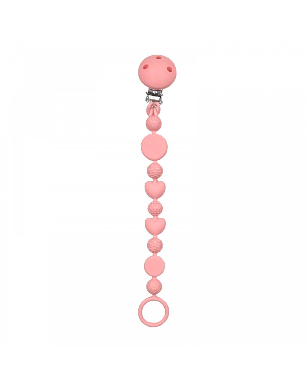 Silicone pacifier chain, made in compliance with EN 71-3 and UNI EN 12586 regulations.