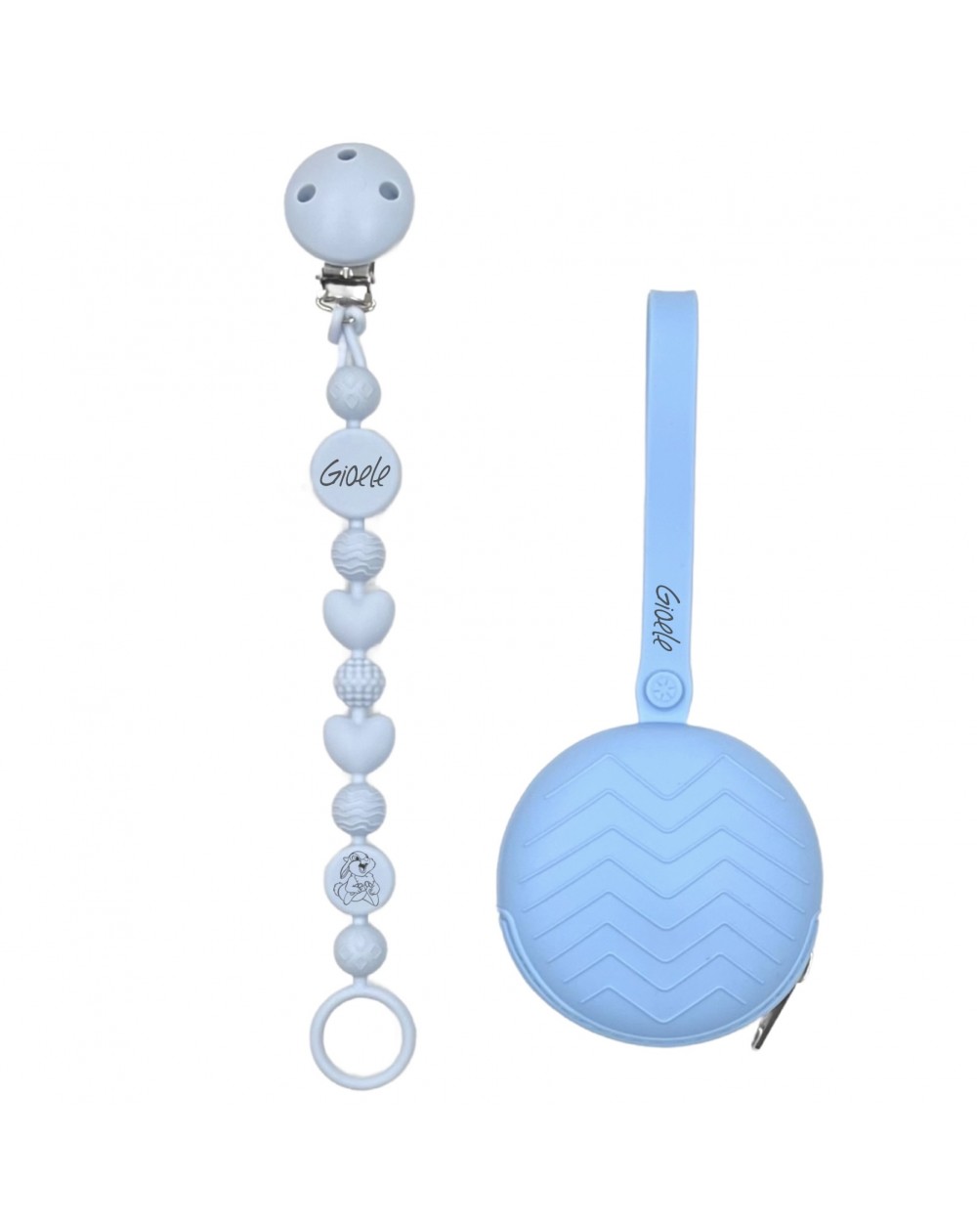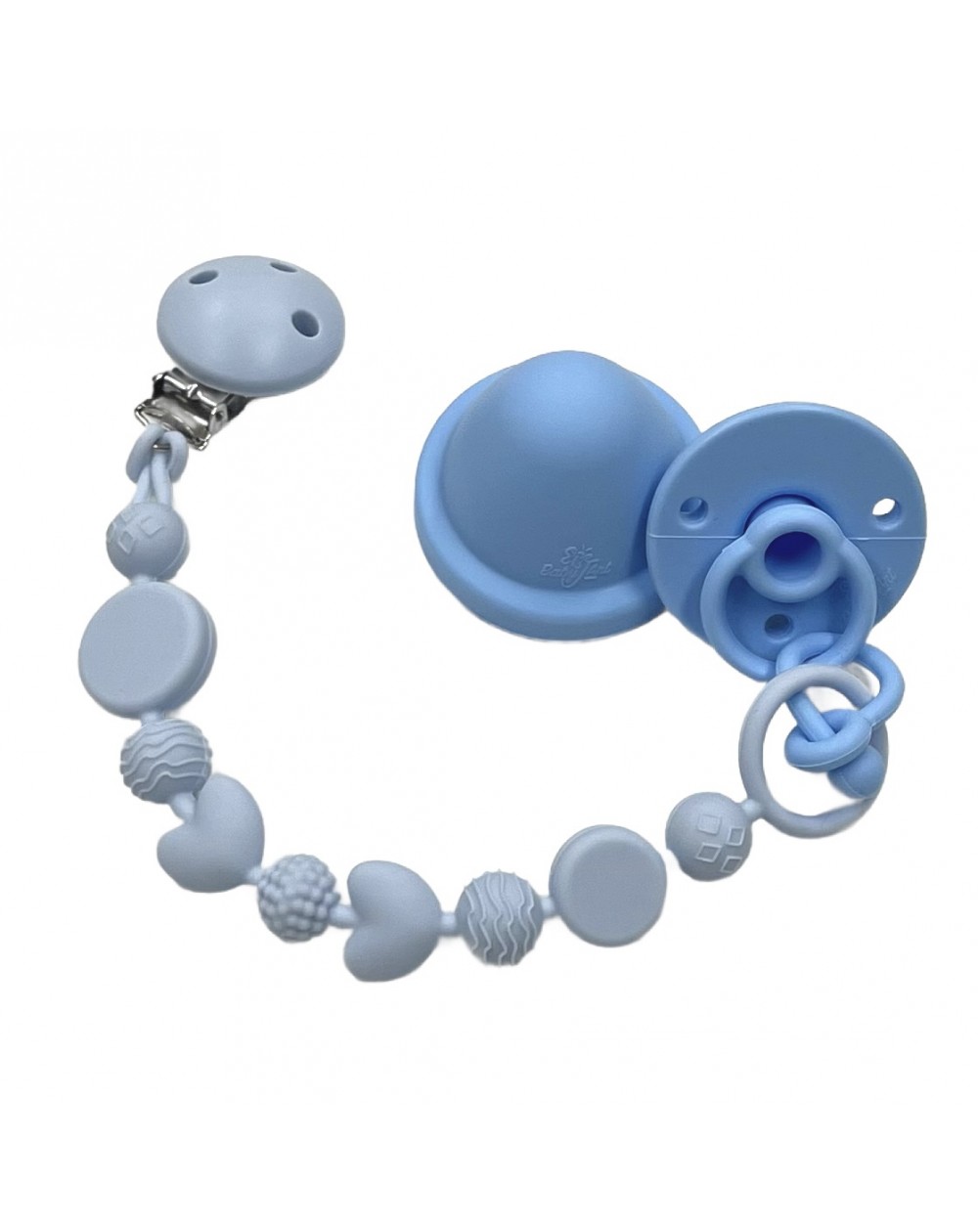 Silicone pacifier chain, made in compliance with EN 71-3 and UNI EN 12586 regulations.