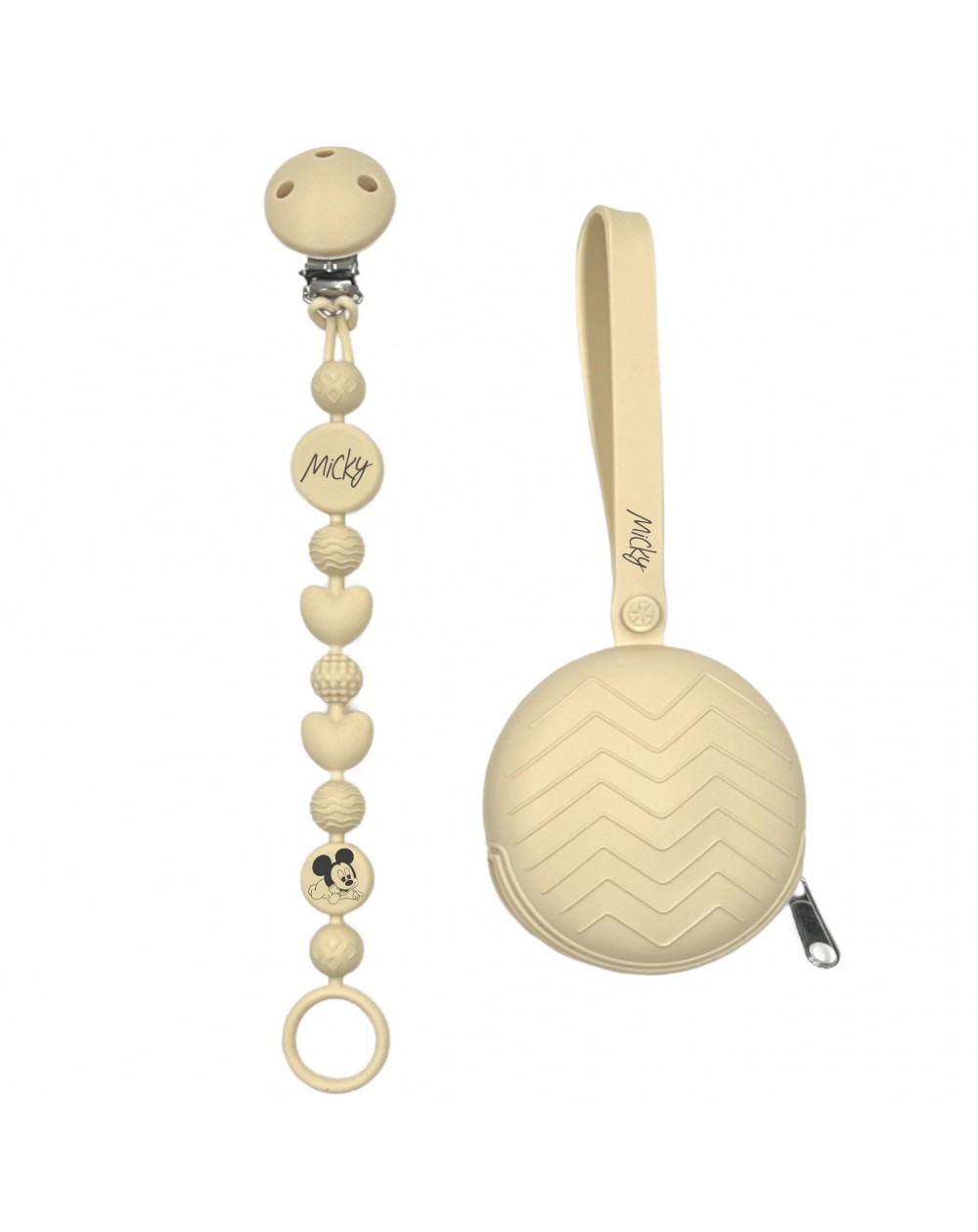 Pacifier chain in silicone BUBBLE BEIGE with name, hook / adapter pacifier MAM and CHICCO