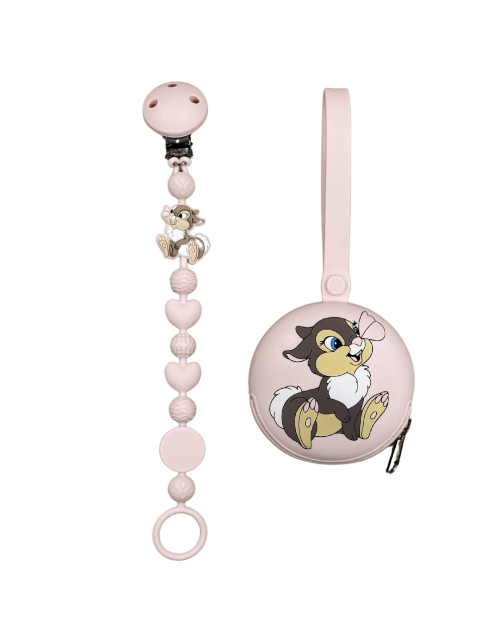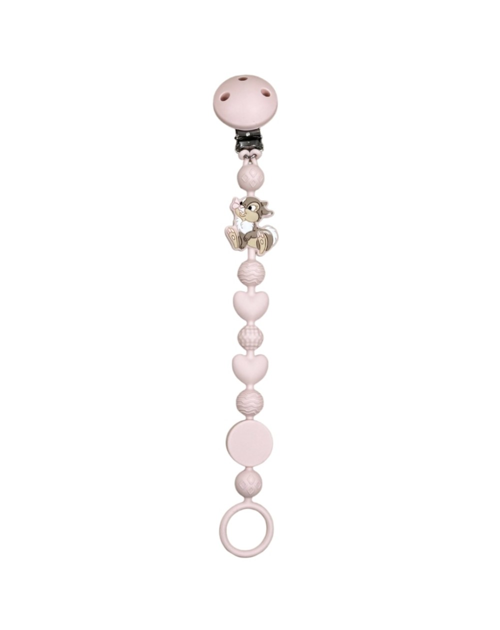 Pacifier chain in silicone BUBBLE CHARM MISS TAMBURINA TALCUM POWDER LIGHT PINK with name