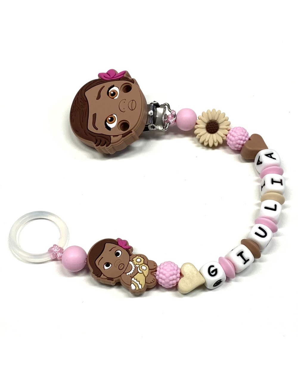 Silicone chain holder, made strictly by hand in compliance with EN 71-3. Customizable with name. Name max 10 letters; Double name max 9 letters.