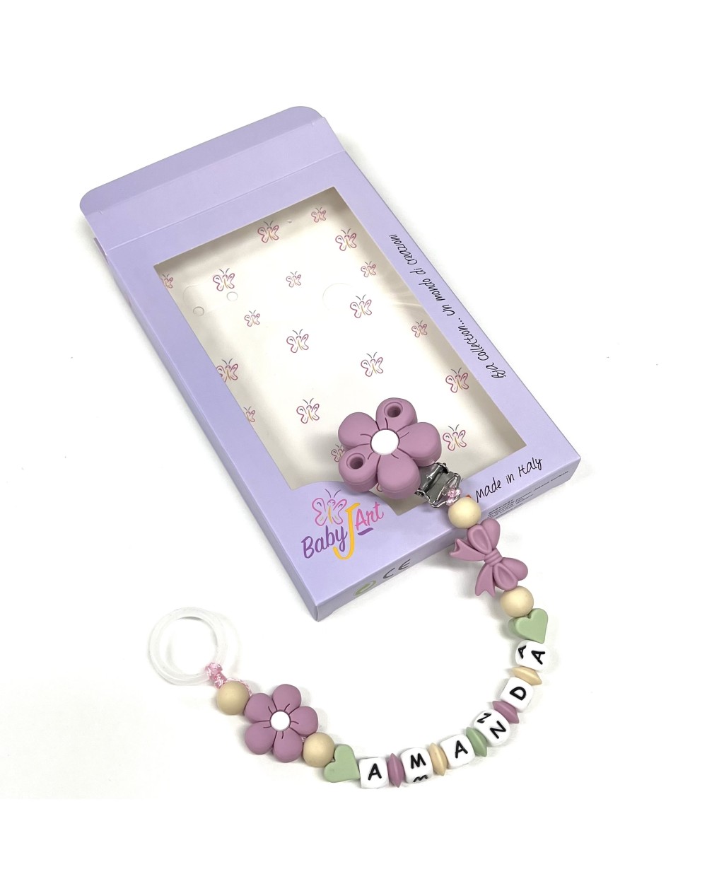Babyjart silicone dummy chain PRESTIGE DAISY with name, hook/adapter pacifier MAM and CHICCO