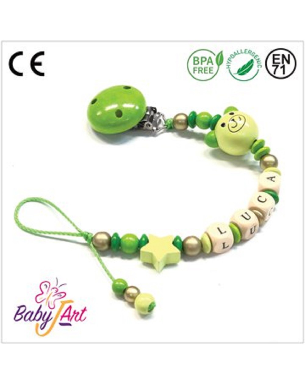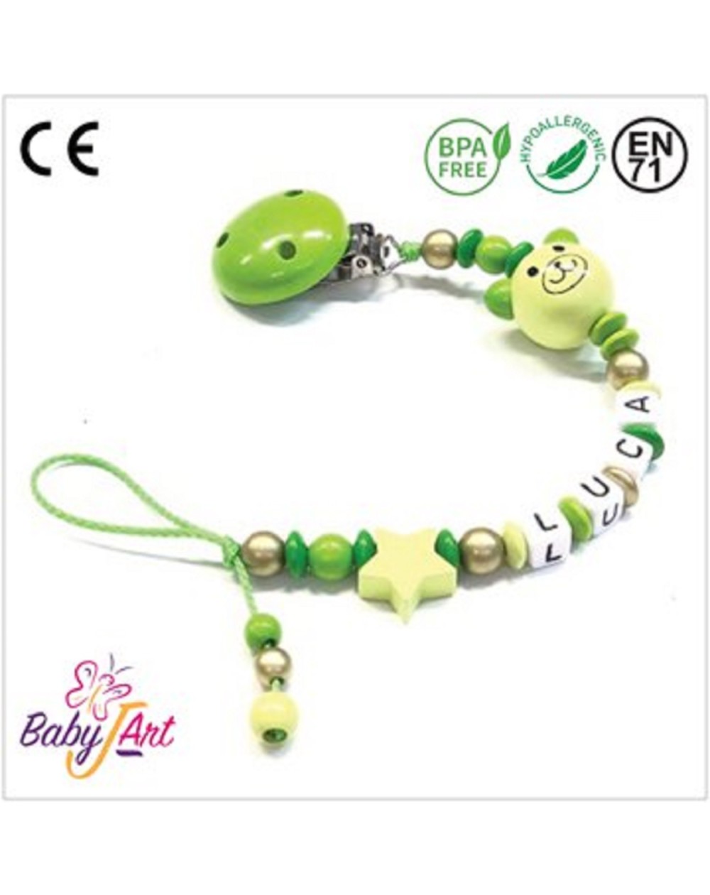 Babyjart wooden dummy chain with name, hook / adapter pacifier mam