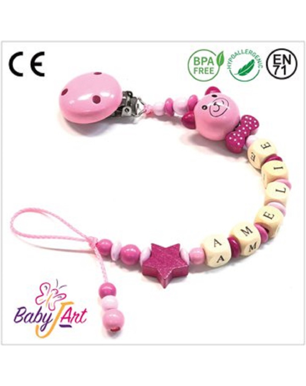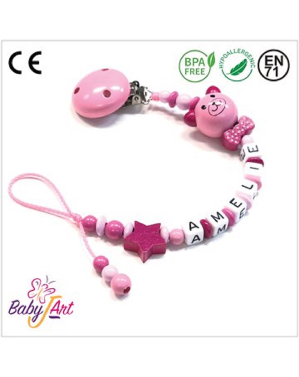 Babyjart wooden dummy chain with name, hook / adapter pacifier mam