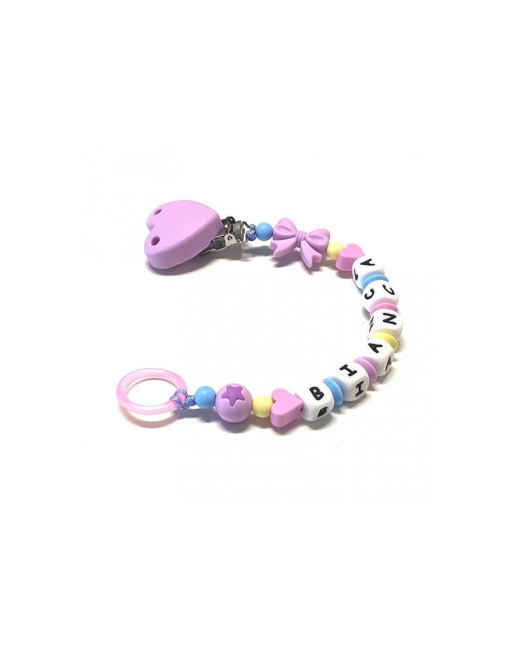 Silicone chain holder, made strictly by hand in compliance with EN 71-3. Customizable with name. Name max 10 letters; Double name max 9 letters. Choice of the CLIP and FIGURE variants