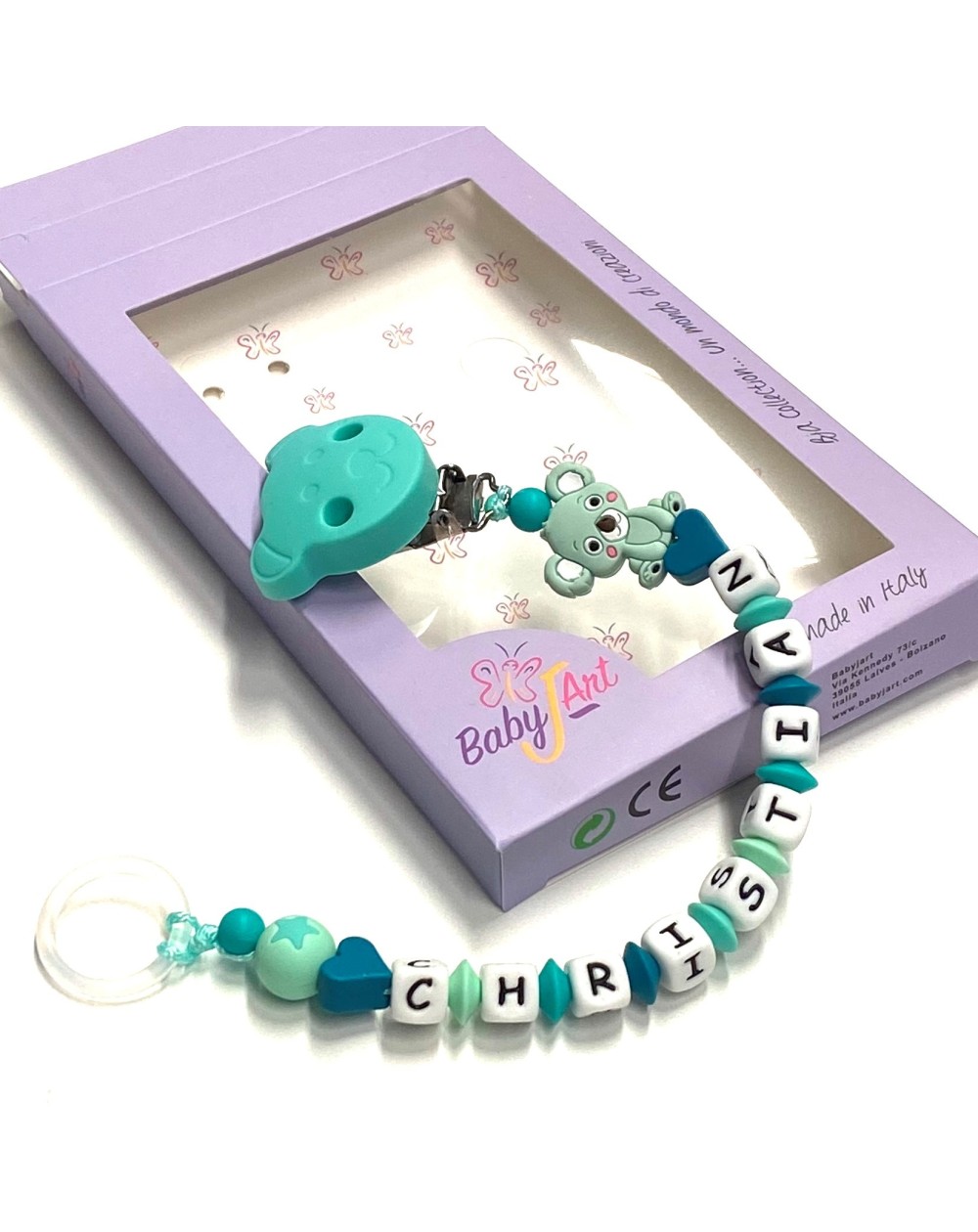 Babyjart Cadena de silicona para chupete con nombre, gancho / adaptador para chupete mam y modelo de chicco