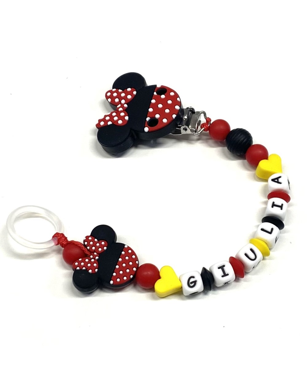 Babyjart Cadena PRESTIGE MINNIE BICOLOR de silicona para chupete con nombre,adaptador para chupete mam y modelo de chicco