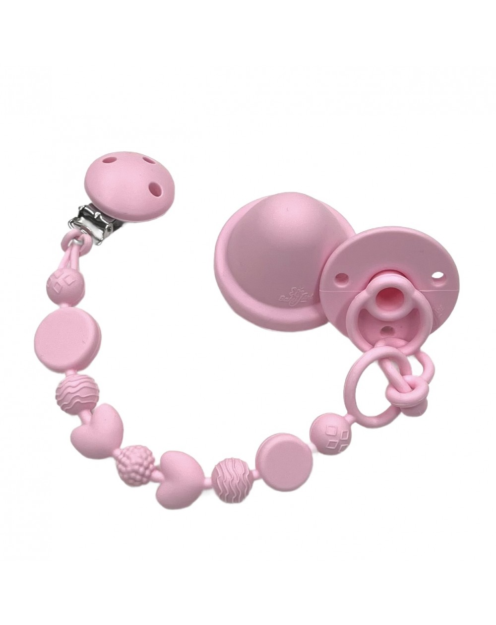 Chaîne de tétine BUBBLE ROSE CLAIR en silicone avec nom, crochet / adaptateur de tétine MAM et CHICCO