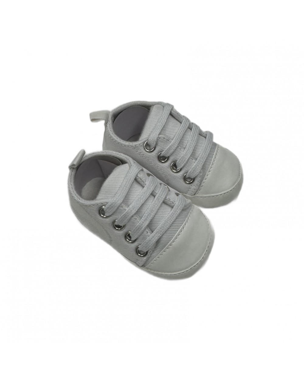 Le prime bellissime sneakers per i neonati sono realizzate in tela, con lacci, punta in ecopelle e suola in tessuto.