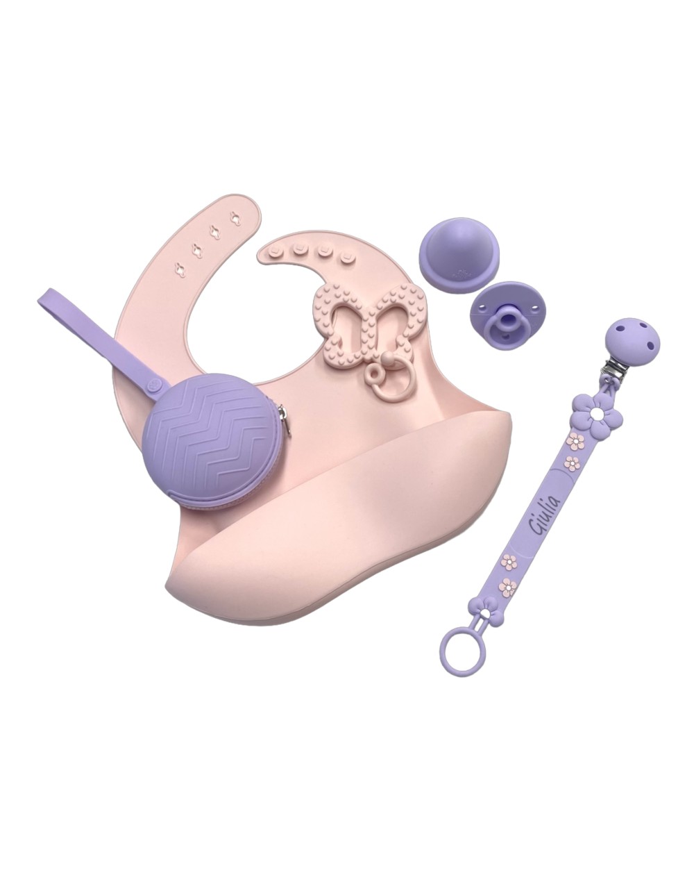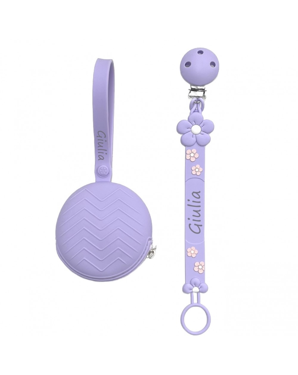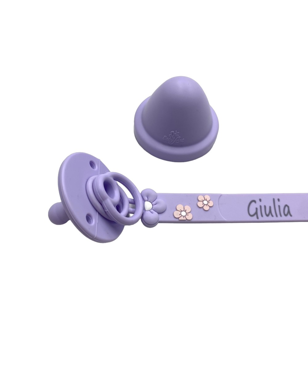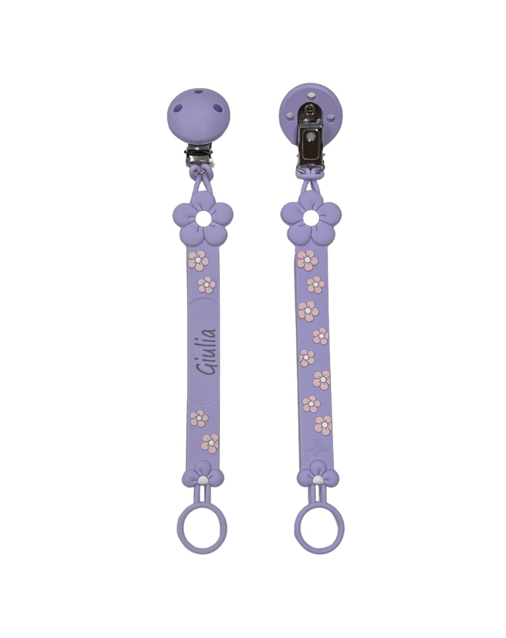 Catenella portaciuccio FLAT MARGHERITA GLICINE in silicone con nome, gancio/adattatore ciuccio MAM e CHICCO