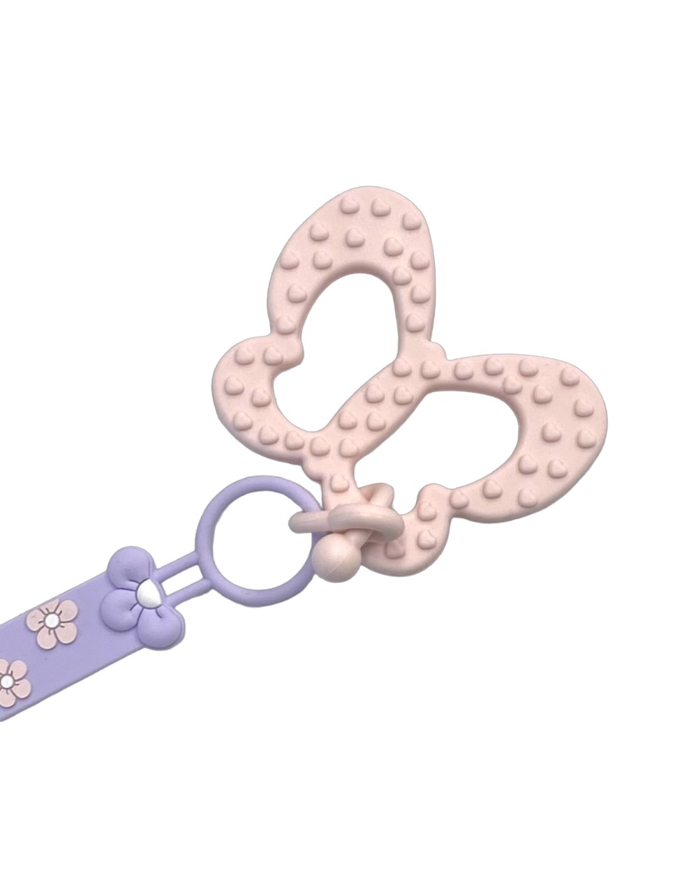 La catenella per ragioni di sicurezza raggiunge una lunghezza di 20cm dall'attacco del ciuccio alla fine della figura (clip esclusa).