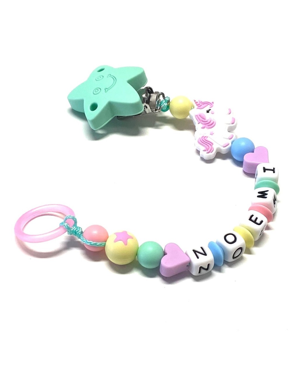 Catenella portaciuccio in silicone, realizzata rigorosamente a mano nel rispetto della normativa EN 71-3.