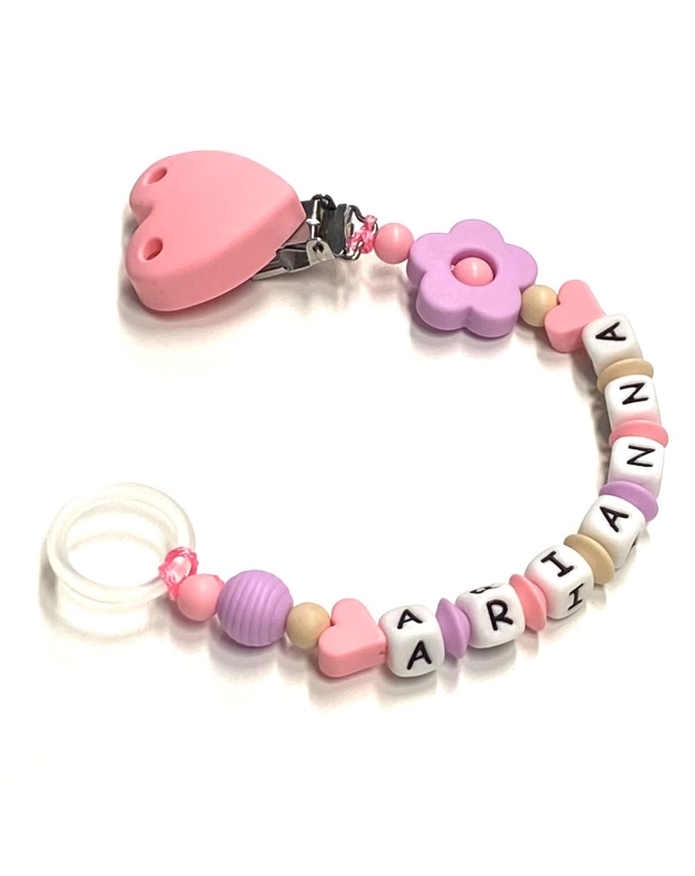Babyjart Catenella portaciuccio silicone con nome, gancio/adattatore ciuccio MAM e CHICCO