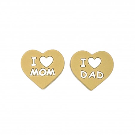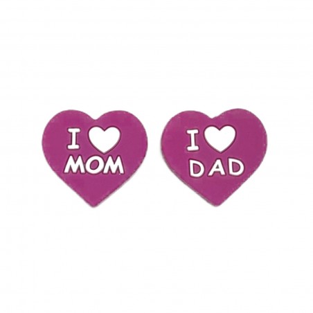 CUORE I LOVE MOM/DAD in silicone. Diametro ca. 25mmx25mm - Foro ca. 3mm verticale (da sopra a sotto).