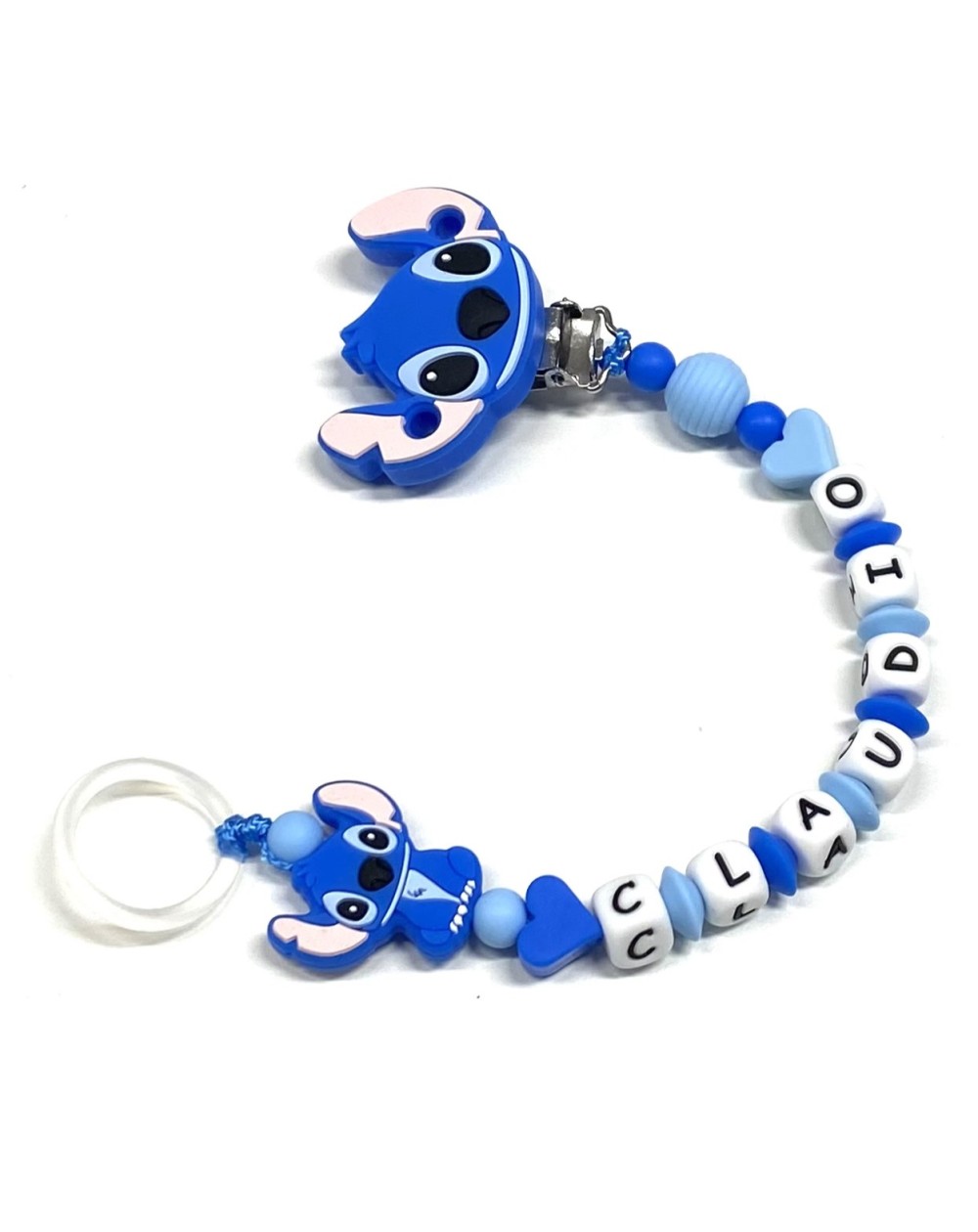 Babyjart Cadeia de chupeta PRESTIGE STITCH de silicone com nome, adaptador/gancho de chupeta MAM e modelo CHICCO