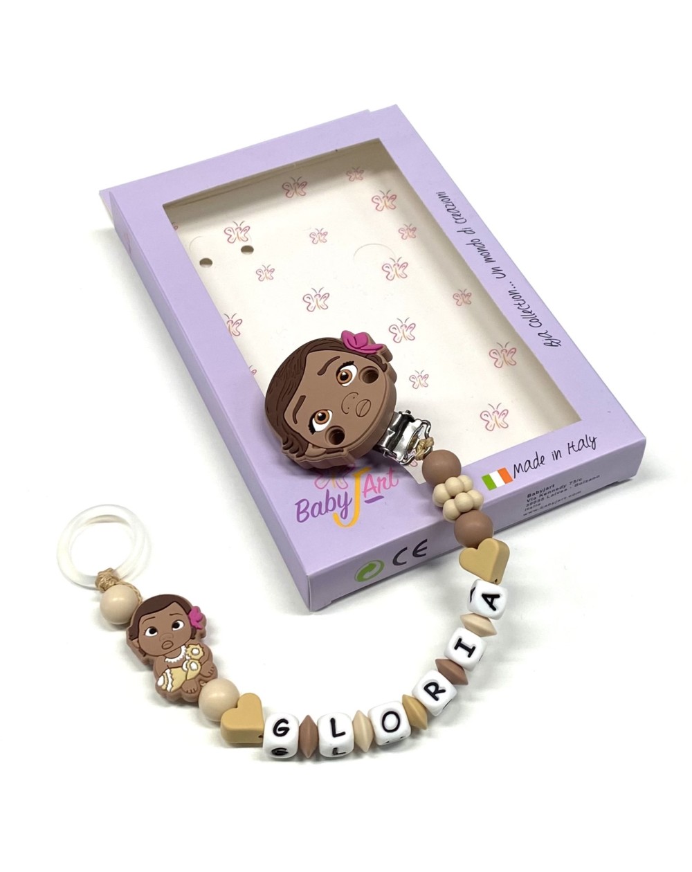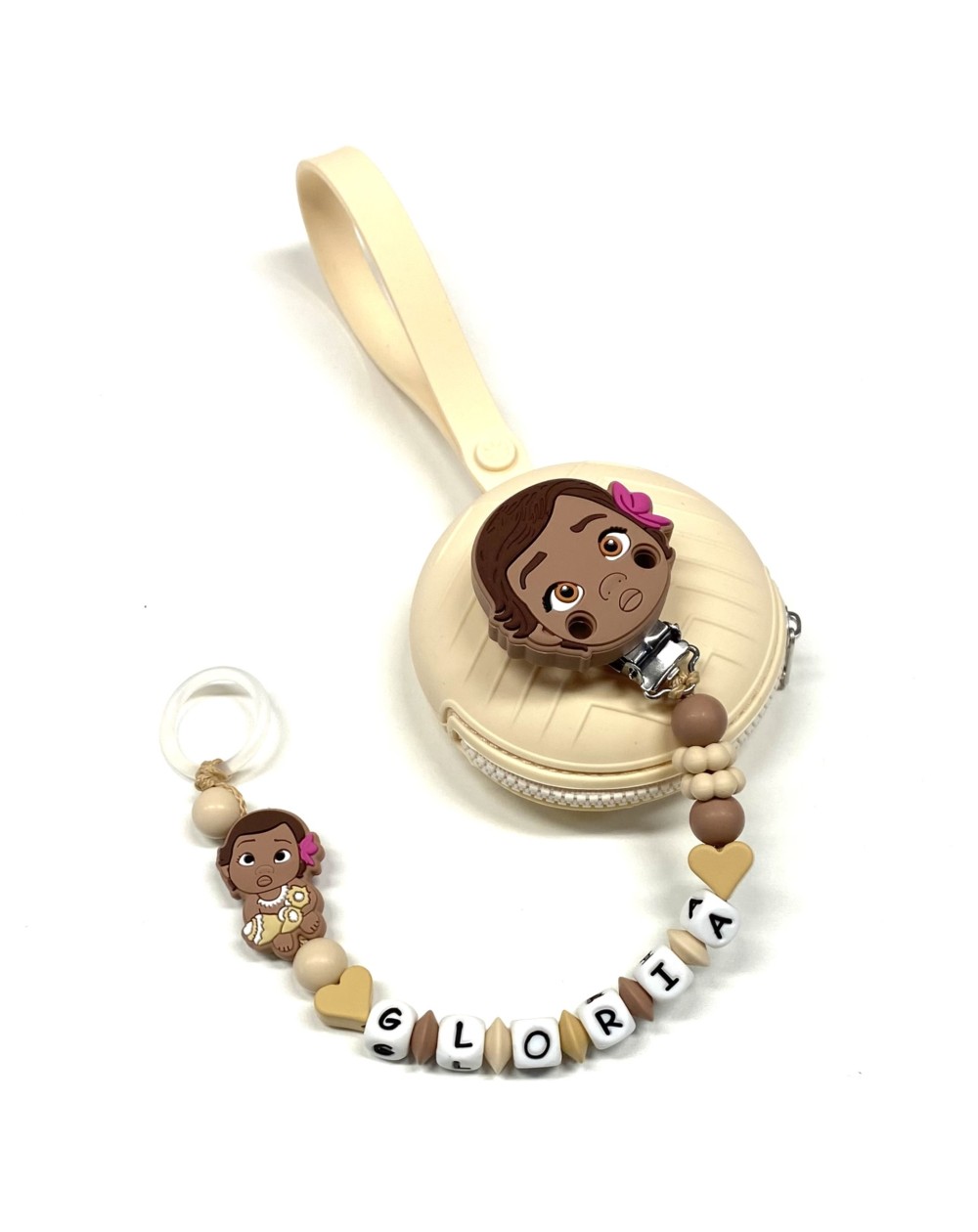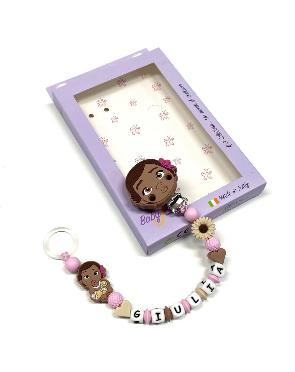 Babyjart Cadeia de chupeta VAIANA OCEANIA de silicone com nome, adaptador de chupeta MAM e modelo CHICCO